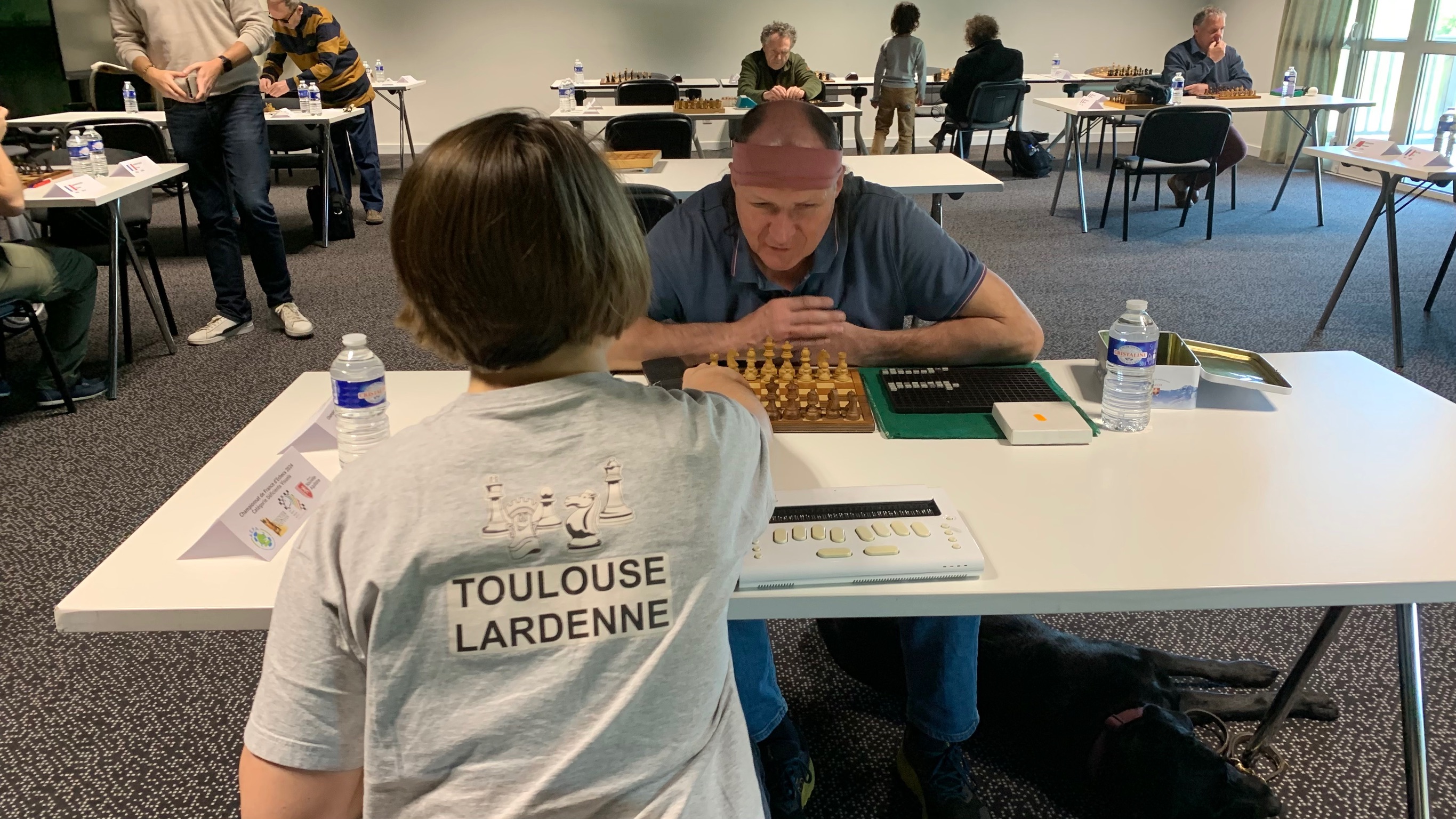 Dans un silence concentré, dans une des salles de l’hôtel-restaurant du Bois de la Marche à Fontaine-le-Comte qui les accueillent, quelques participants finalisent leur partie en cette fin de matinée du samedi 11 mai 2024. Tous appartiennent au groupe de trente compétiteurs engagés au championnat de France d’échecs ca- tégorie handicap visuel.