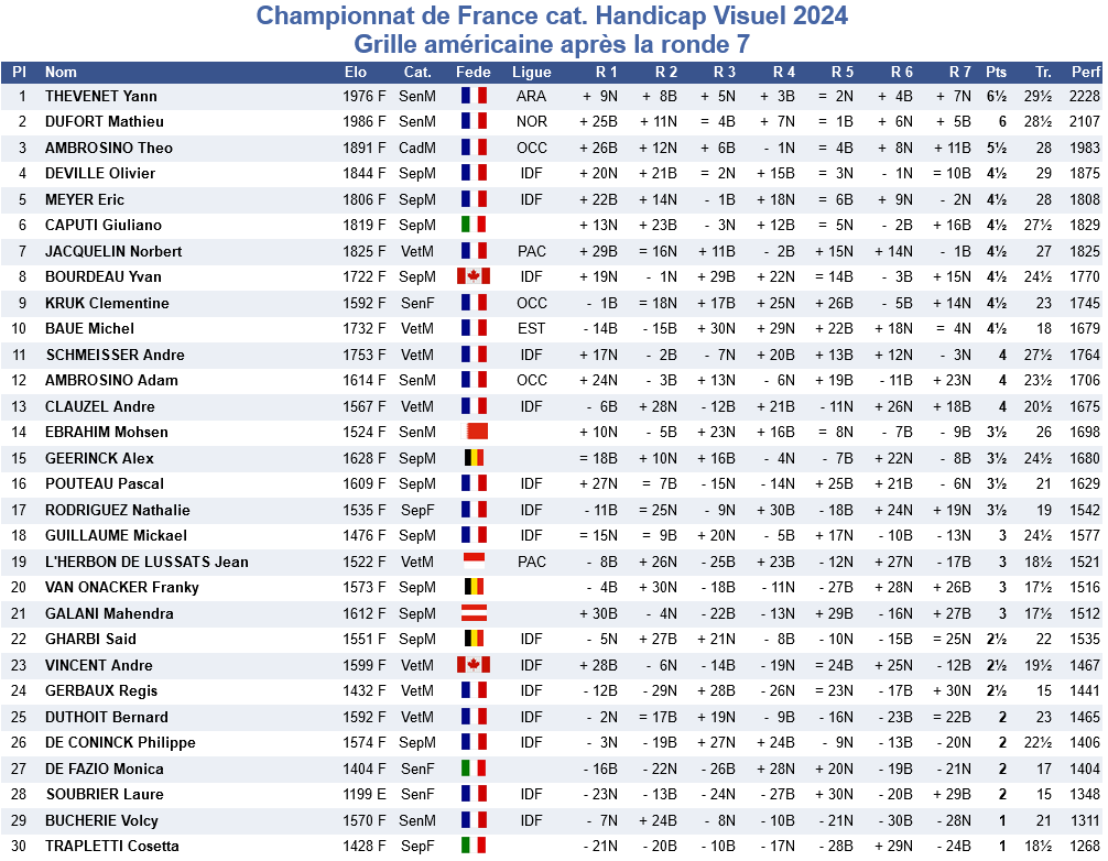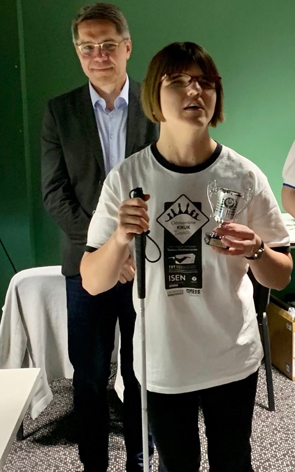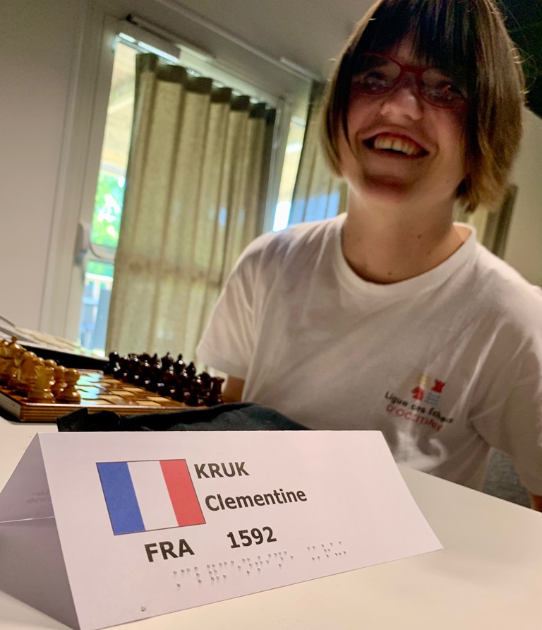 29 participants pour l’édition 2024 du Championnat de France des non voyants, ce qui dans la moyenne. Notre représentante de Lardenne, Clémentine Kruk termine à une belle neuvième place avec une performance à plus de 1700 elo. Elle décroche ainsi le titre de Championne de France féminin du jeu non voyant.