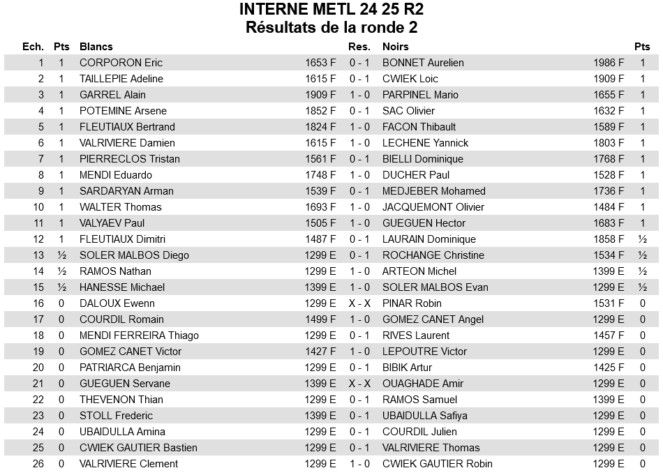 Tournoi interne Ronde 2