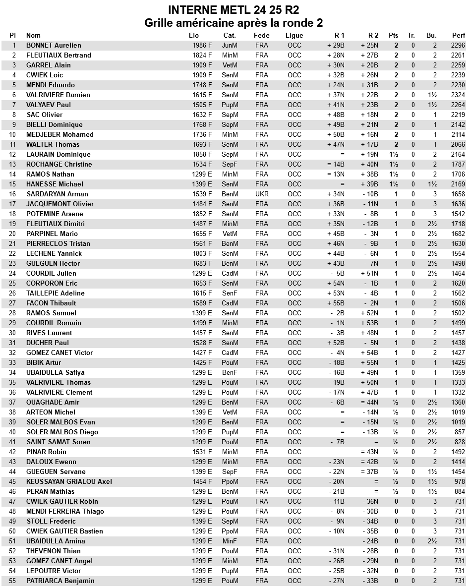 Grille américaine après la ronde 2 :