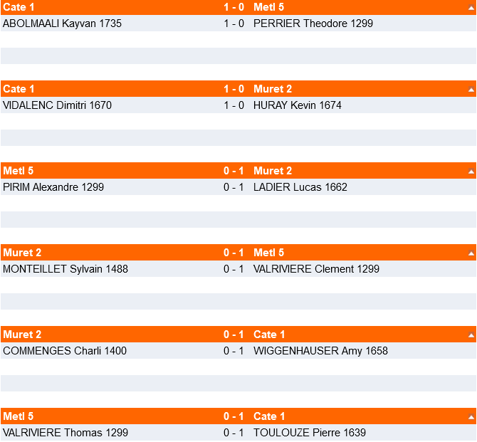 Détail des matchs :
