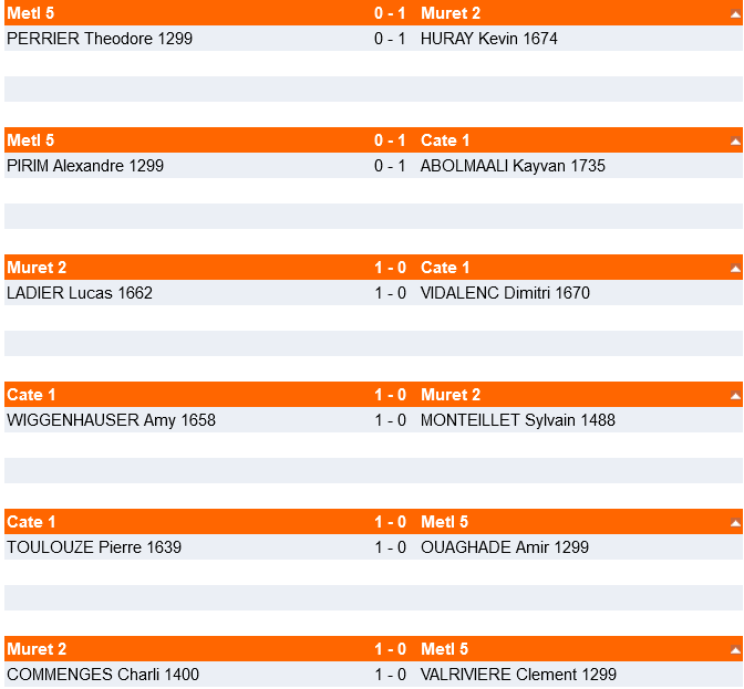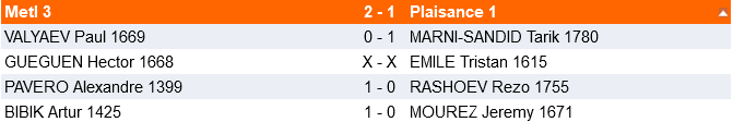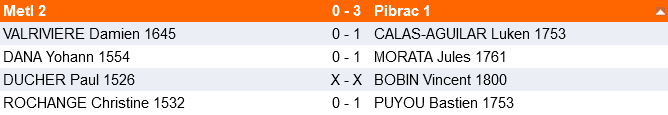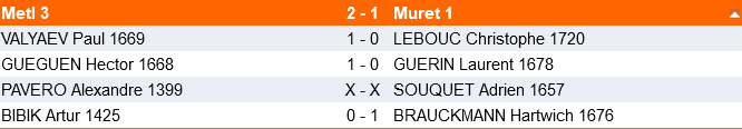 3 rondes de 50min+10s par coup étaient prévues avec des rondes à 10h, 13h et 15h et une pause repas à 12h.