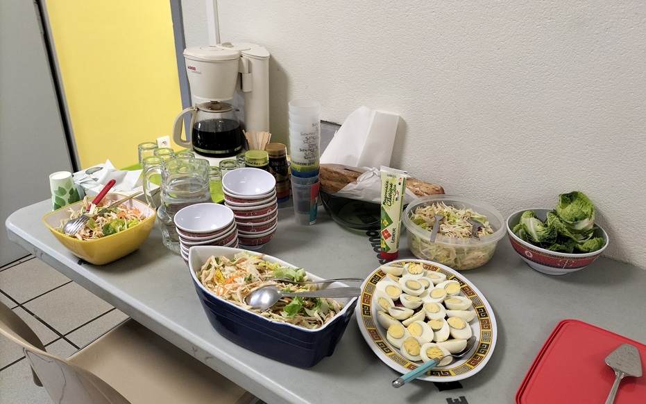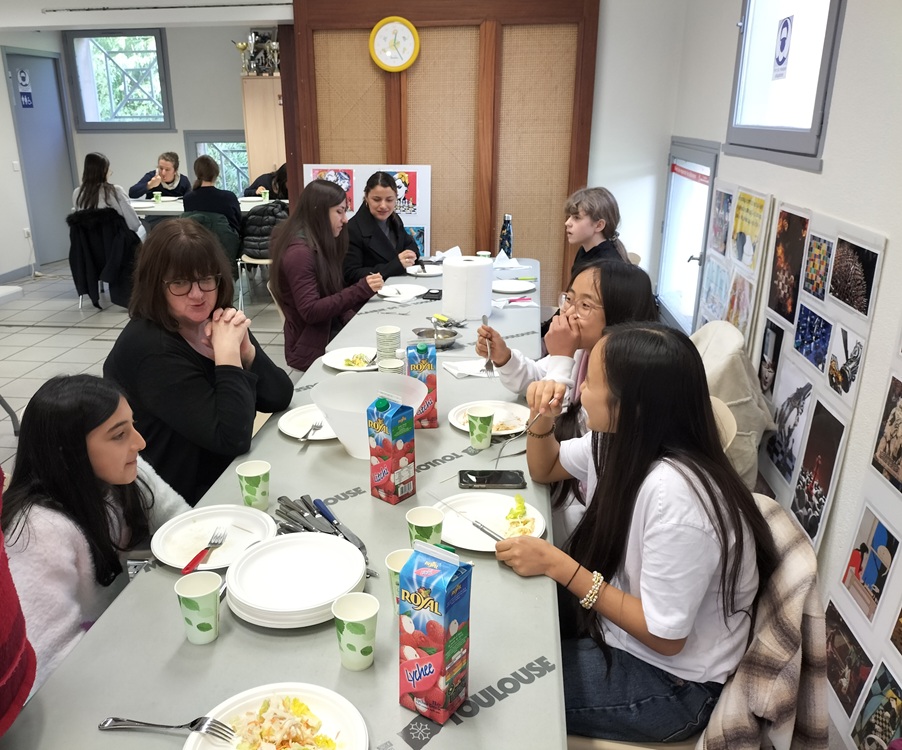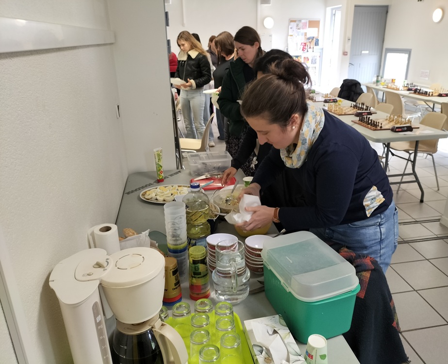 A midi, le club a offert le repas aux participantes et accompagnateurs ; au menu, salade vietnamienne, riz cantonais et nems et litchis en dessert avant la reprise peu après 13h pour les deux dernières rondes prévues.