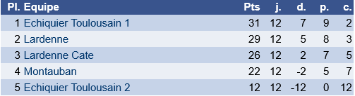 L’équipe une de Lardenne s’impose par 3 victoires à 1 pour la première ronde et rebelote pour la seconde.