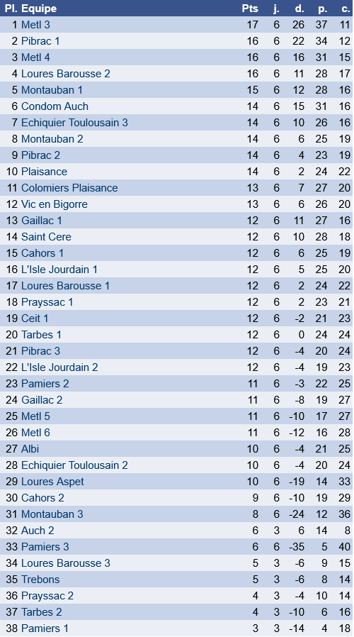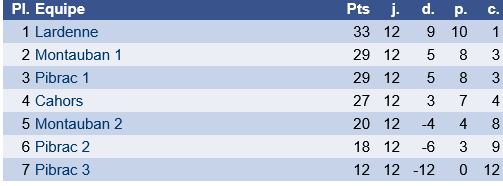 La coupe de la parité (phase de Ligue, zone Midi-Pyrénées) : 7 équipes dont 3 équipes de Pibrac et 1 de Toulouse Lardenne)