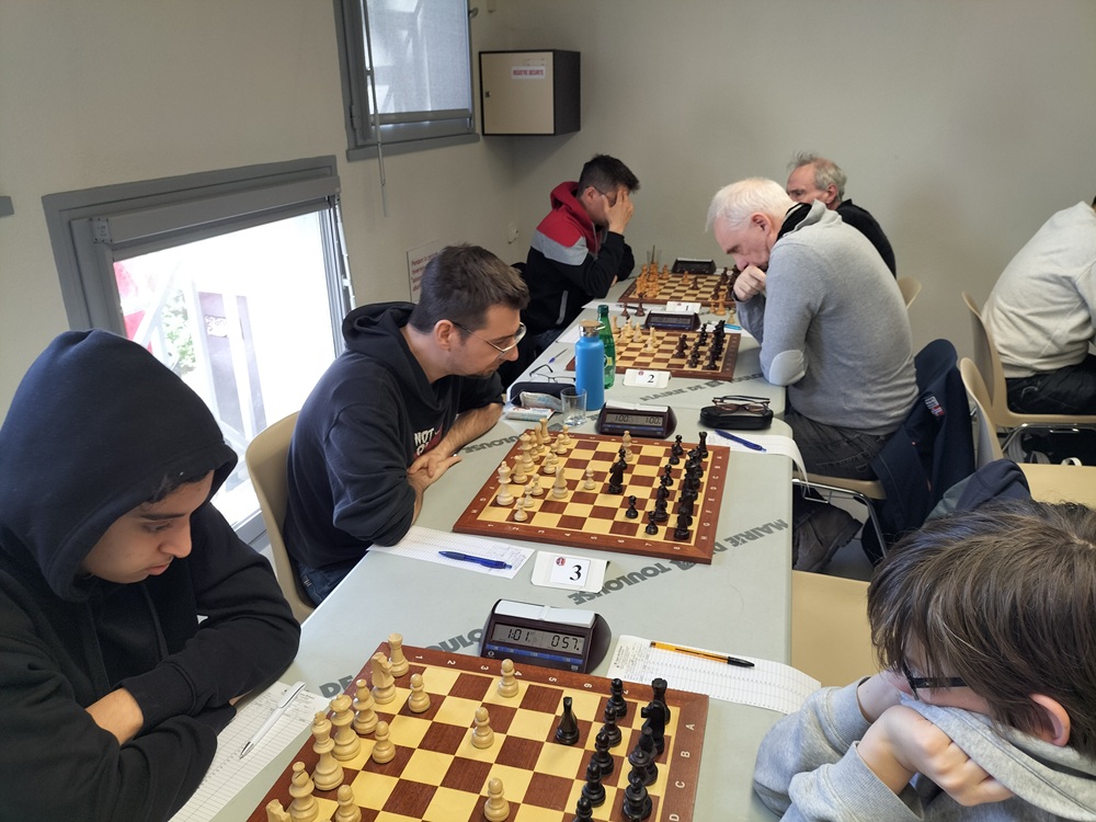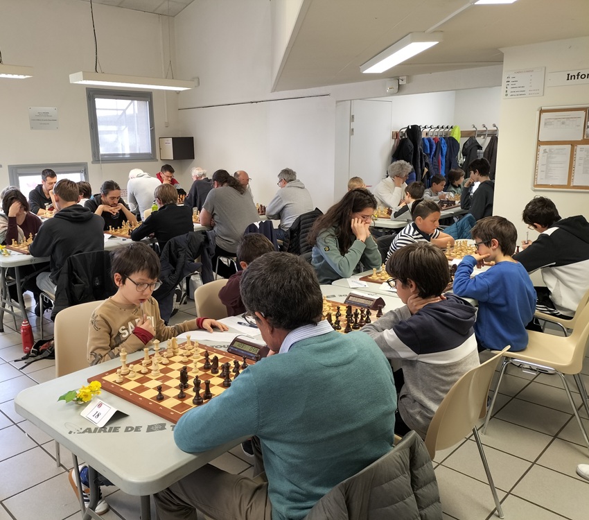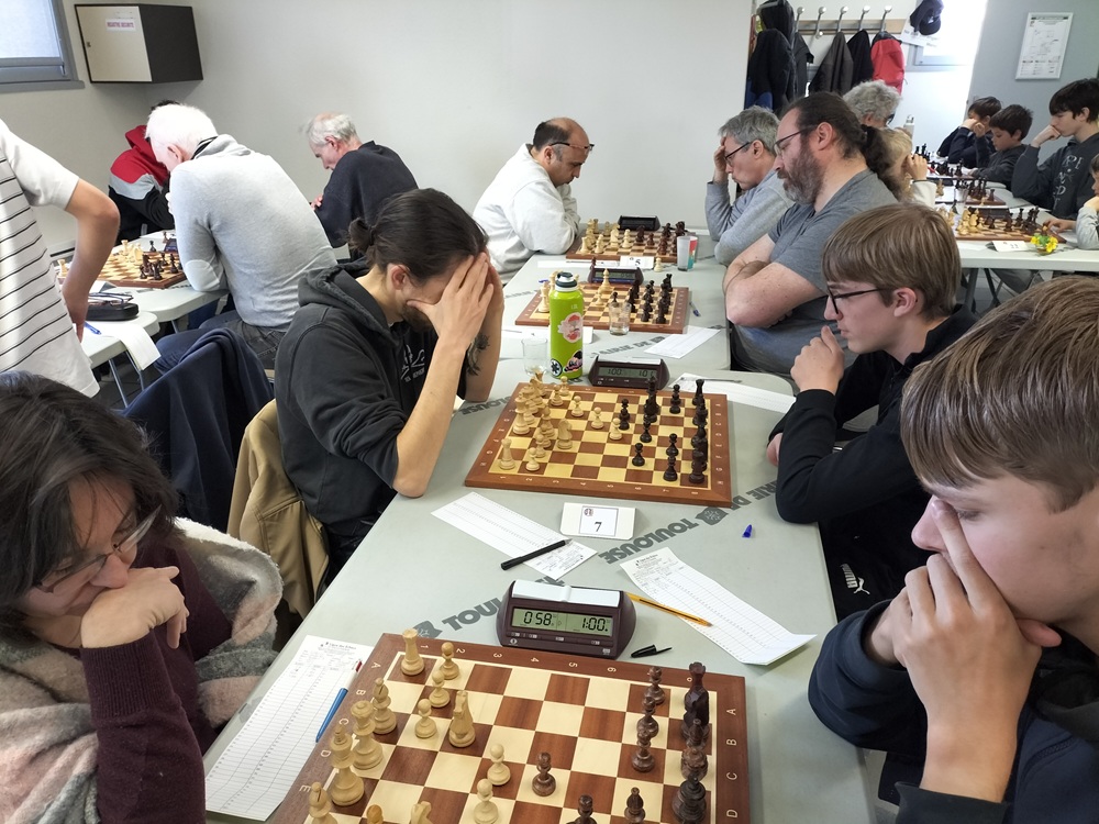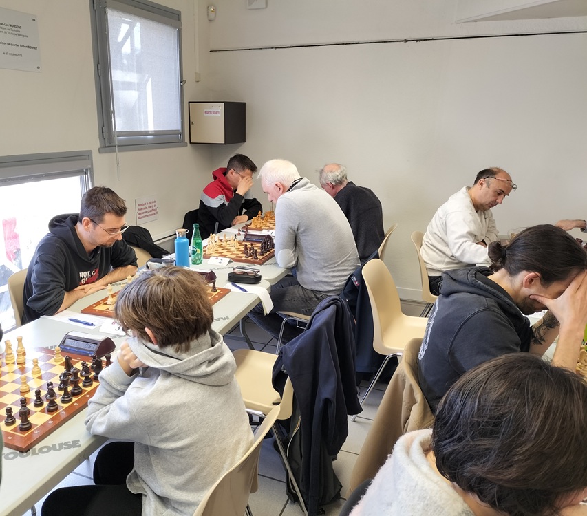 La salle de jeu de Lardenne ne désemplit pas lors de cette ronde 6 du tournoi interne le samedi 8 mars 2025.
