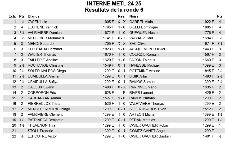 Tournoi interne Ronde 6
