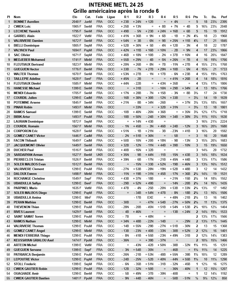 Grille de résultats intermédiaire après la ronde 6 :