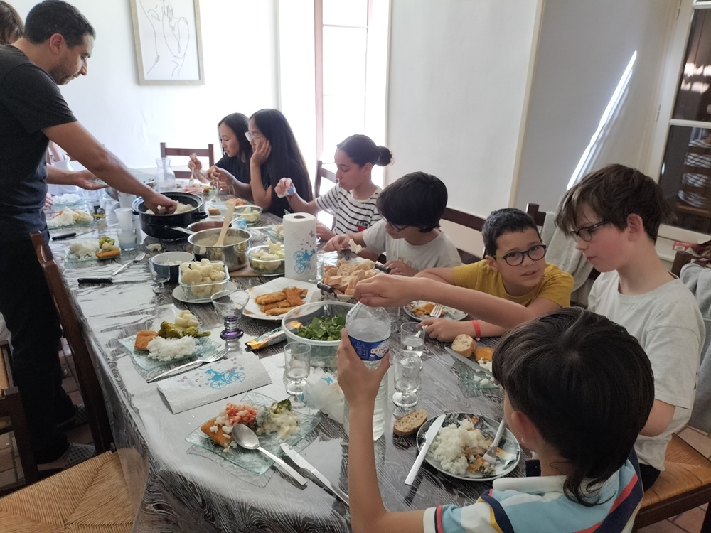 Repas pris en commun au logement.