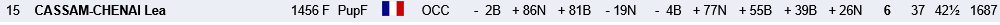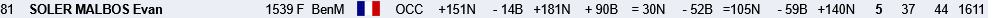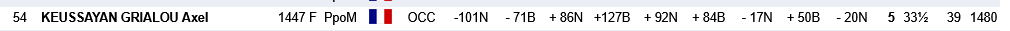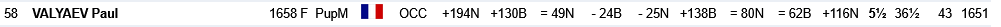 A noter également les bons résultats de Léa Cassam-Chenai en U12F (6/9) , Bertrand Fleutiaux en U16 (4/9) mais +40 au compteur elo... Certains ont bien résisté à l’instar de Paul Valyaev (5.5/9) ou d’Evan Soler Malbos (5/9) en open A ou bien pour les autres qualifiés du club tels que par exemple Yan Durka Vincendet ou Mohamed Medjeber en U16 qui ont un résultat proche de leur elo initial. Dur dur en revanche pour nos U10 qui n’y étaient visiblement pas, tout comme Diego Soler Malbos qui bien que qualifié en U12 avec à peine un an de pratique en club manque encore d’expérience.
