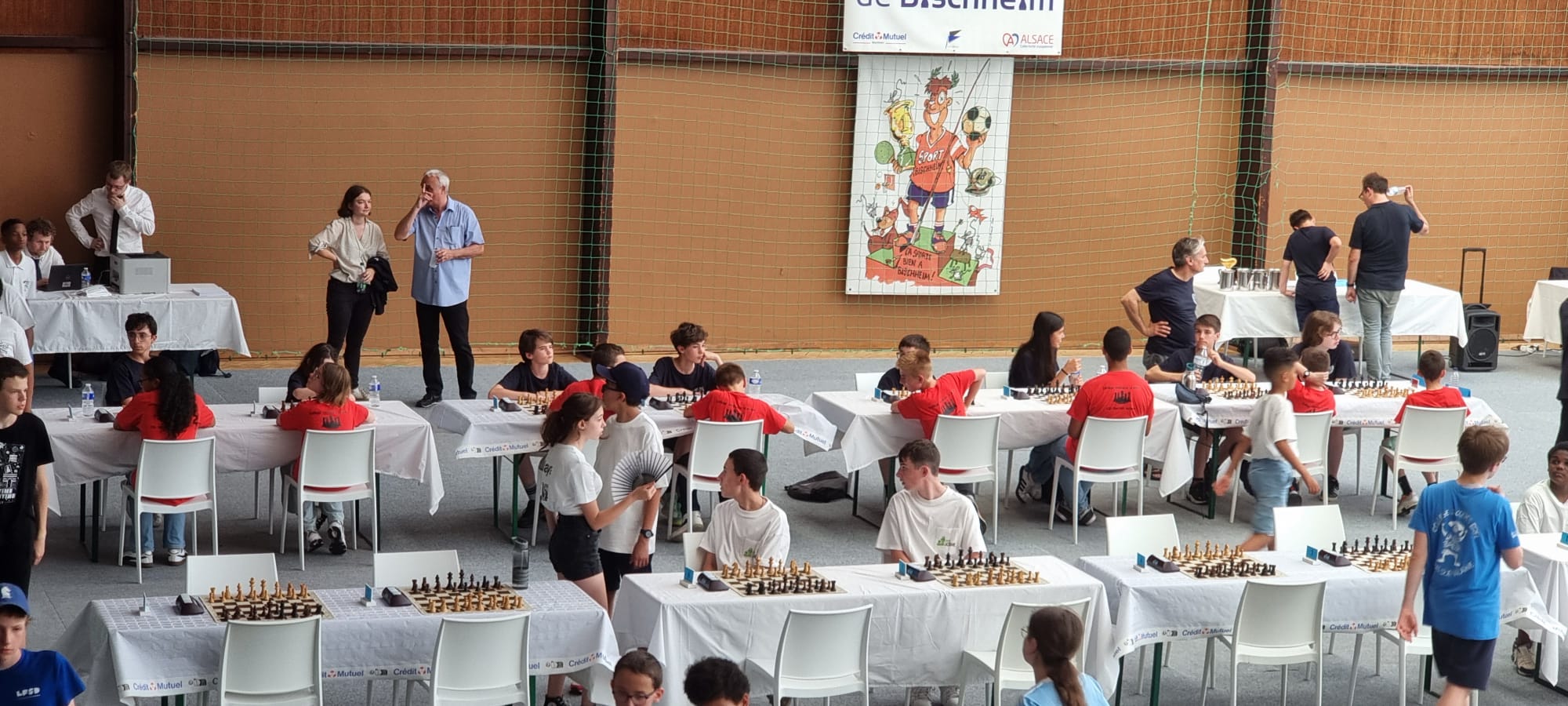 24 équipes étaient au rendez-vous de cet évènement organisé par la FFEchecs et le club de Bishheim ( dont on remerciera les bénévoles qui ont fait un énorme travail ! ) et notre équipe soit 192 joueurs au total sans compter les remplaçants, par son classement en point elo est en gros dans la moyenne basse.