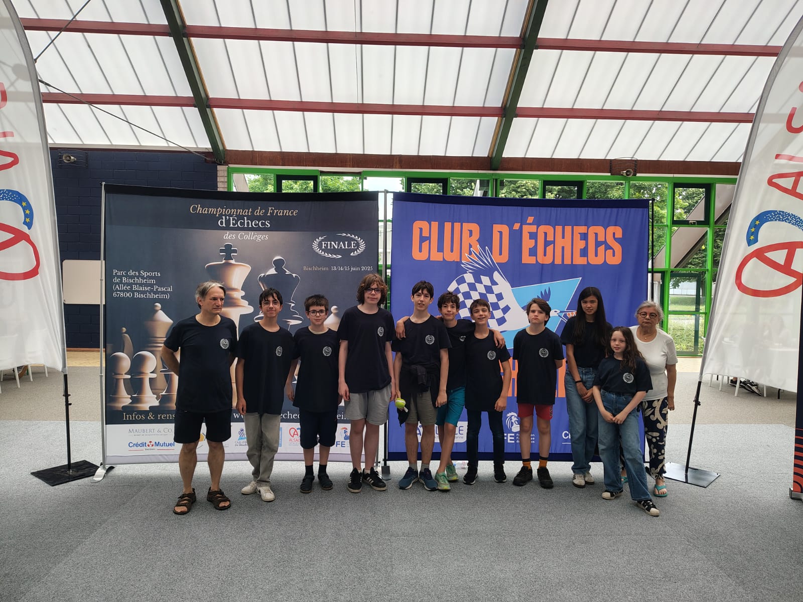 Les responsables du club de Lardenne ont été très mobilisés ce week-end des 13-15 juin avec le déplacement de l’équipe des collégiens de l’établissement Emilie de Rodat (quasiment tous adhérents du club !) à Bishheim, tout près de Strasbourg ! C’est de mémoire notre plus lointain déplacement pour une compétition d’échecs !