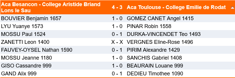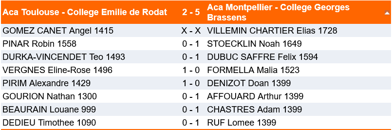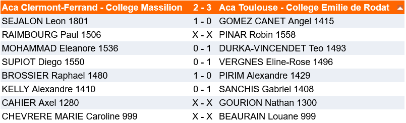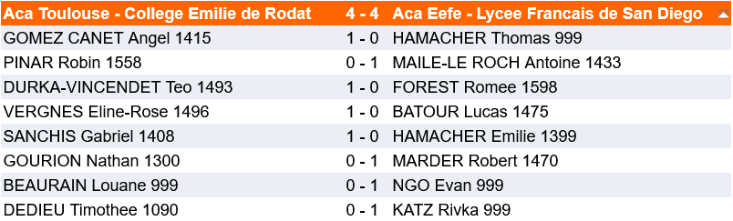 En résumé, une belle expérience humaine qui a notamment été rendue possible grâce au soutien de l’établissement Emilie de Rodat, du club Maison des Echecs de Toulouse Lardenne pour la logistique globale, du père de Louane et la mère de Téo pour les déplacements et dont le détail est précisé ci-dessous :