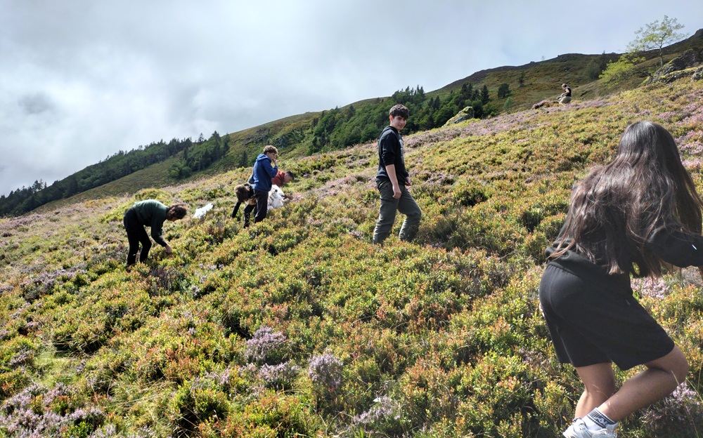La promenade à Issarbe dans un champ de myrtilles pour les stagiaires (une douzaine cette année)